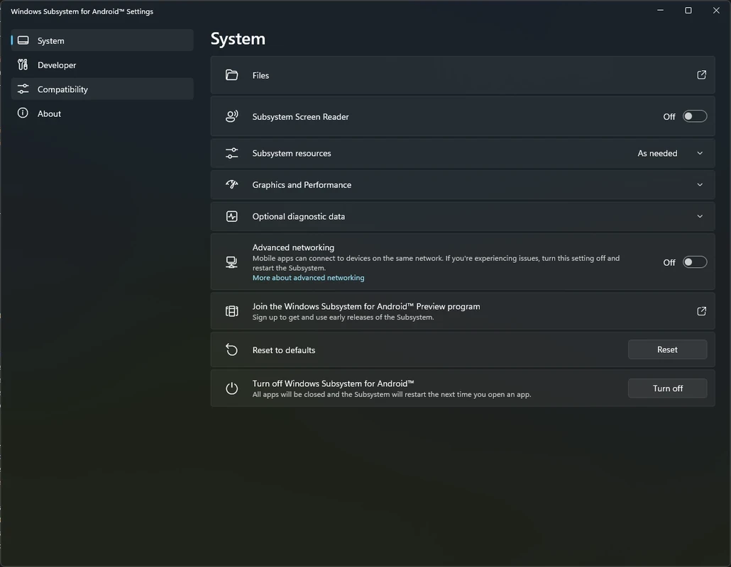 Windows Subsystem สำหรับ Android ช่วยให้ผู้ใช้ Windows 11เข้าถึงได้โดยตรงไม่ว่าจะใช้เวอร์ชันใดก็ตาม คุณสามารถดาวน์โหลดและติดตั้งโปรแกรมด้วยตนเองได้โดยใช้ไฟล์เก็บถาวรแบบสแตนด์อโลน อินเทอร์เฟซที่ใช้งานง่ายและราบรื่นช่วยให้สามารถปรับขนาด ปักหมุด และจัดการแอปต่างๆ ได้โดยใช้ตัวจัดการงาน คล้ายกับแอปภายในเครื่องของ Windows
